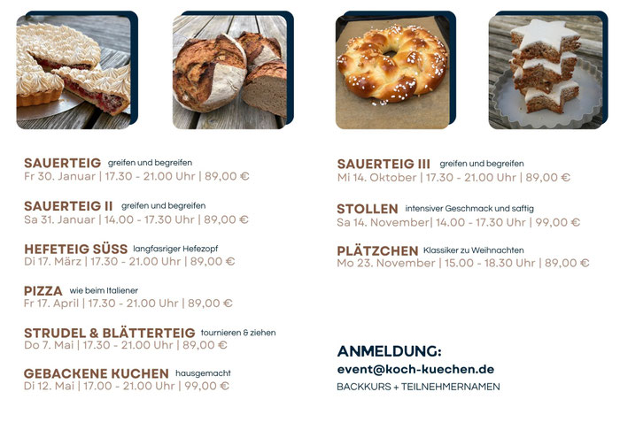 Für diesen Backabend berechnen wir 104,00 € pro Person, inkl. MwSt.